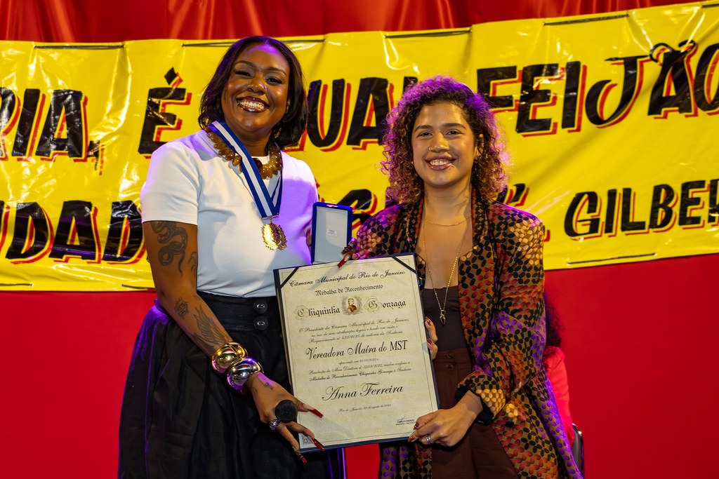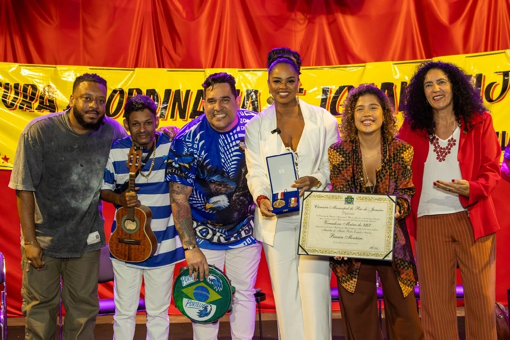 A cerimônia também contou com as presenças da deputada estadual Marina do MST e do secretário municipal de Cultura do Rio, Lucas Padilha. A deputada destacou a relação entre soberania e arte e criticou a criminalização da cultura popular.