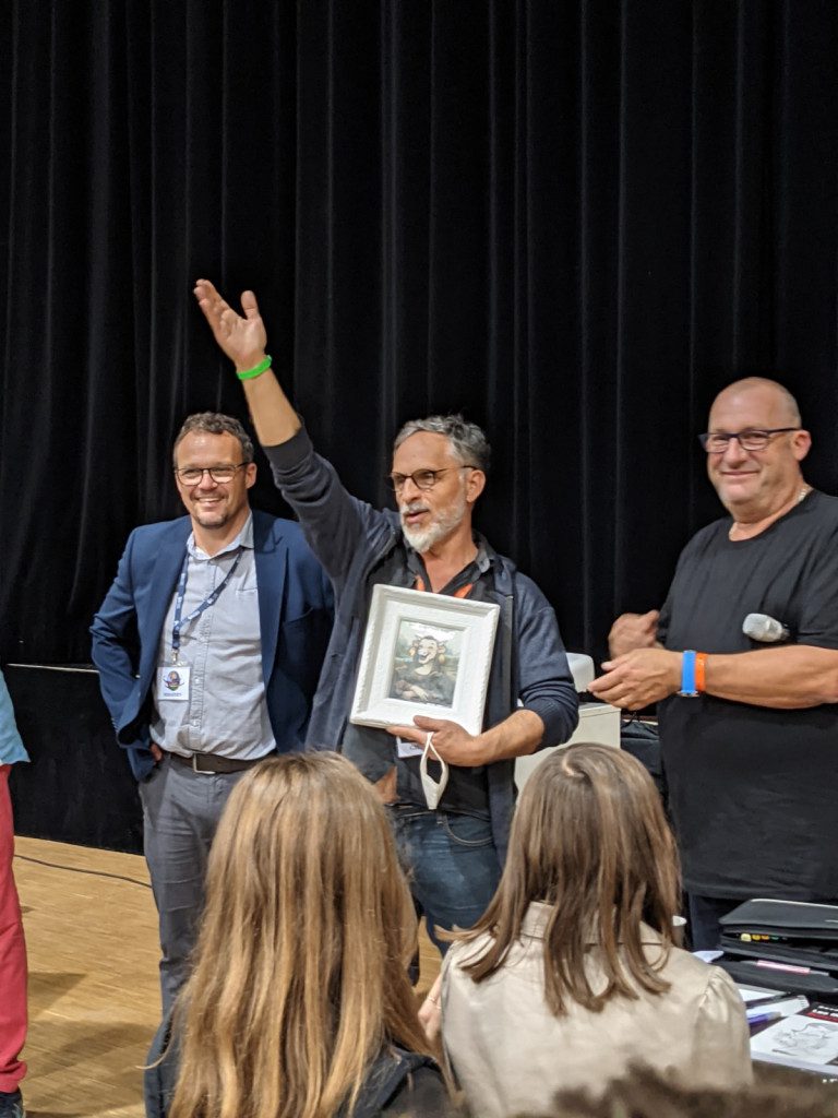 Em 2021, no Festival Internacional de Desenho de Imprensa de Saint-Just-le-Martel, o cartunista brasileiro Gilmar foi homenageado e recebeu o “Prêmio Grand Prix Internacional De La Presse Étrangère” (Grande Prêmio Internacional da Imprensa Estrangeira) pelo conjunto da sua obra, sendo o artista homenageado daquela edição. (Foto: acervo pessoal).
