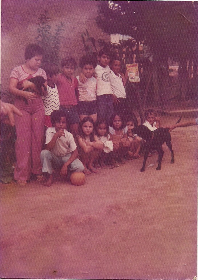 Gilmar, aos 10 anos de idade, segurando uma revista em quadrinhos, ao lado de irmãos, primos e vizinhos. Foto: acervo pessoal.